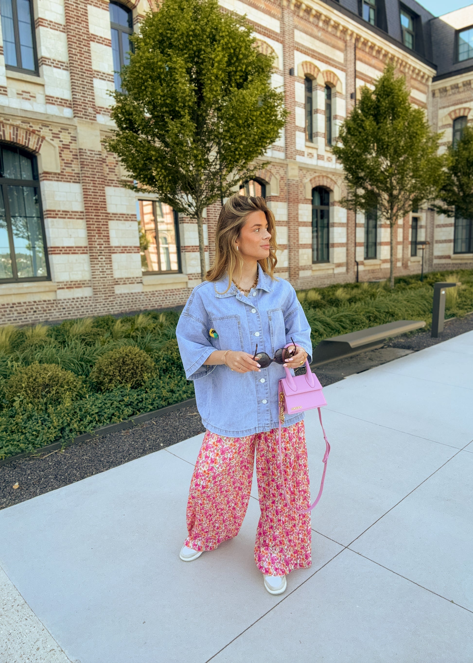 Découvrez la chemise en jean oversize brodée bleue claire.