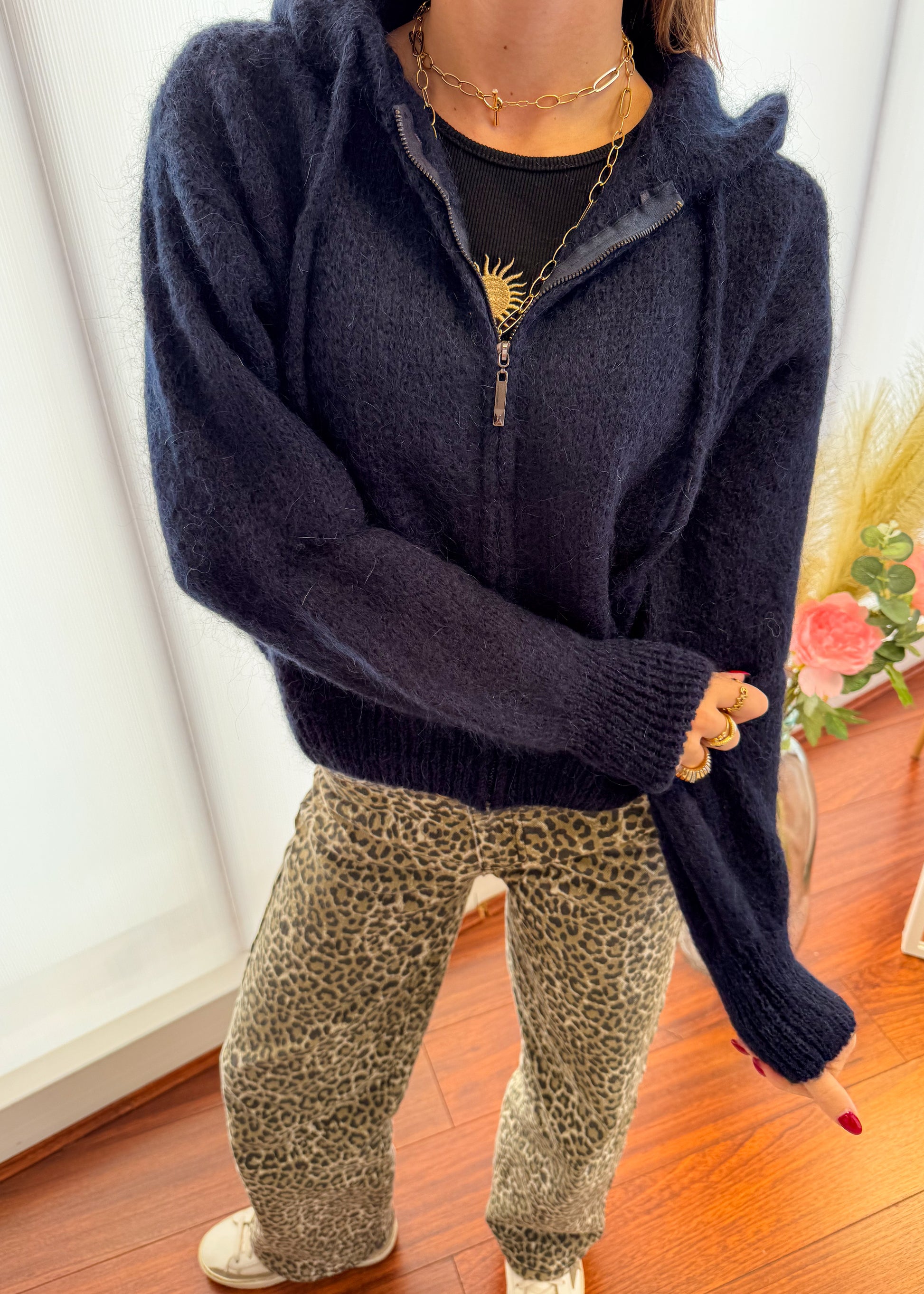 Découvrez le gilet zippé Zélie oversize en maille douce.