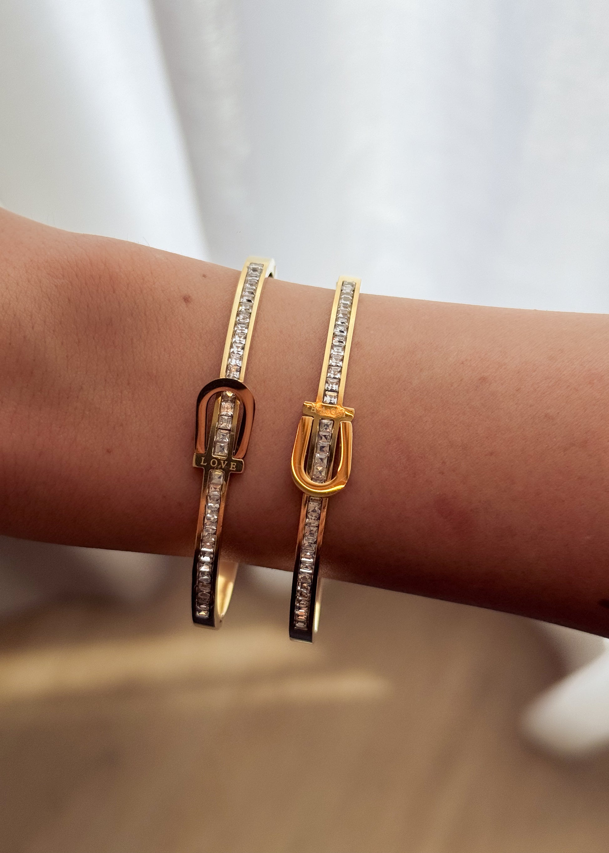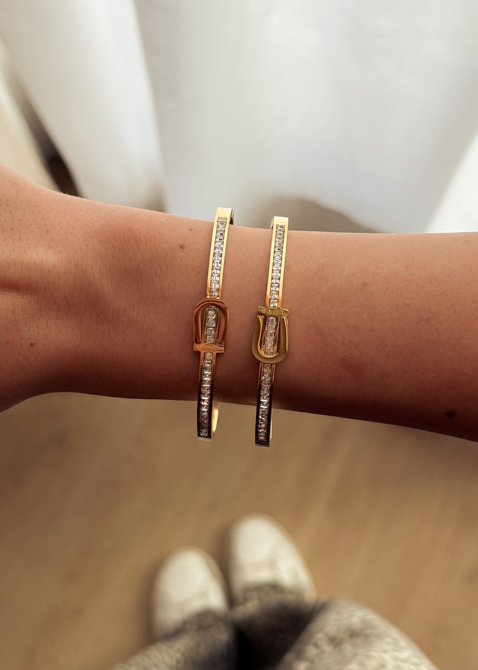 Le jonc Léana, à la fois sobre et brillant, embellit ton poignet avec une touche d’éclat subtile. Paré de strass finement sertis, il reflète la lumière à chaque mouvement.