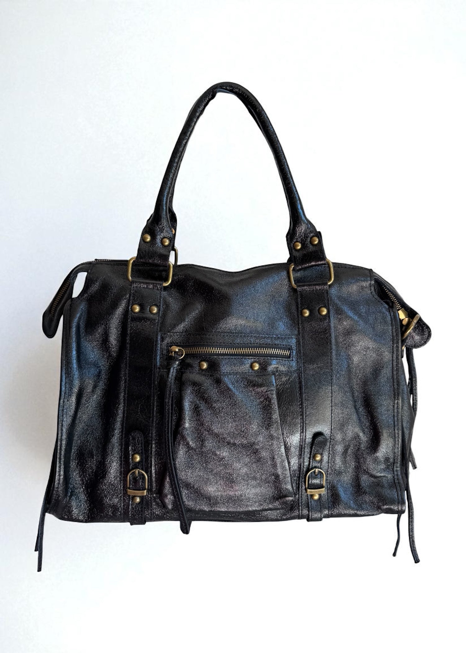 Découvrez le sac Althéa confectionné en cuir brillant souple, un intemporelle pour la saison automne/hiver. Idéal comme sac de cours grâce à sa capacité et son format pratique.