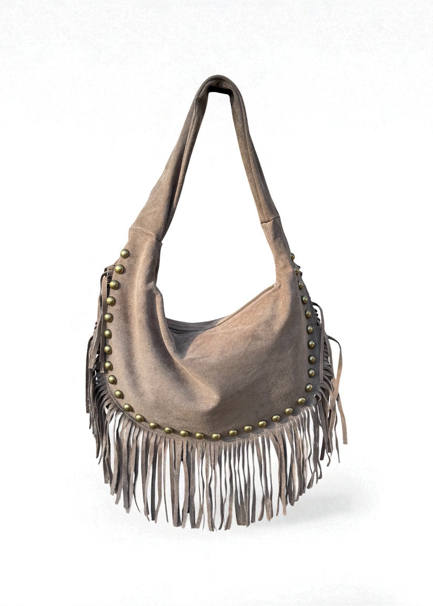 Apportez une touche bohème-chic à vos tenues avec le sac Ysia, un sac à franges élégant en daim effet suédé, conçu pour sublimer votre style au quotidien.