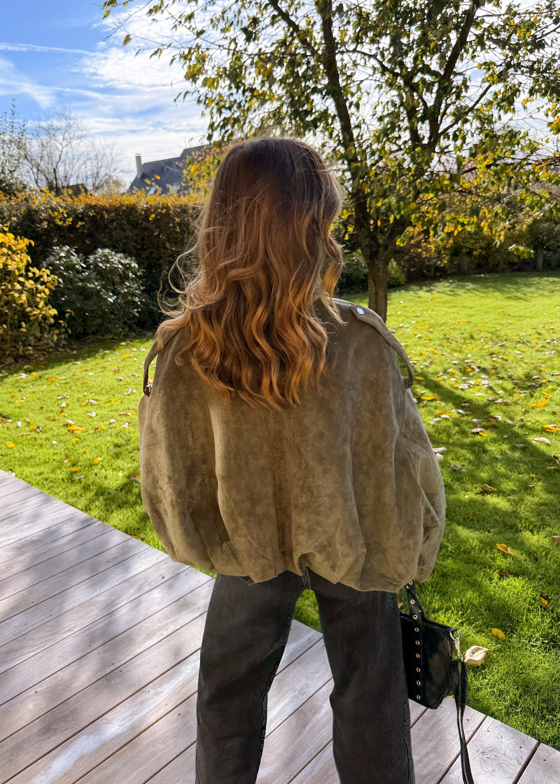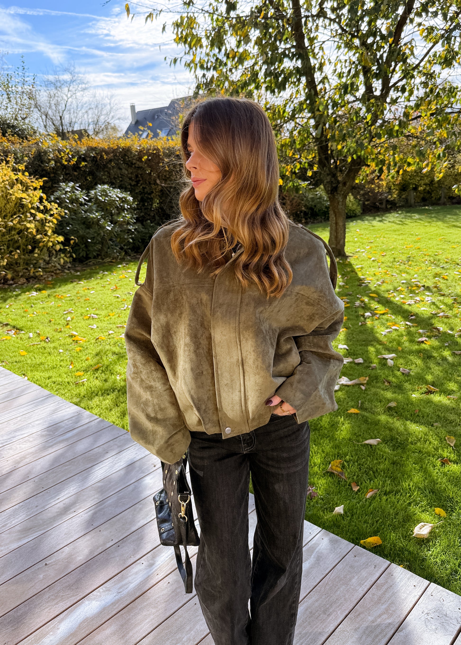 Apportez une touche casual-chic à vos looks avec cette veste bomber oversize en faux daim.